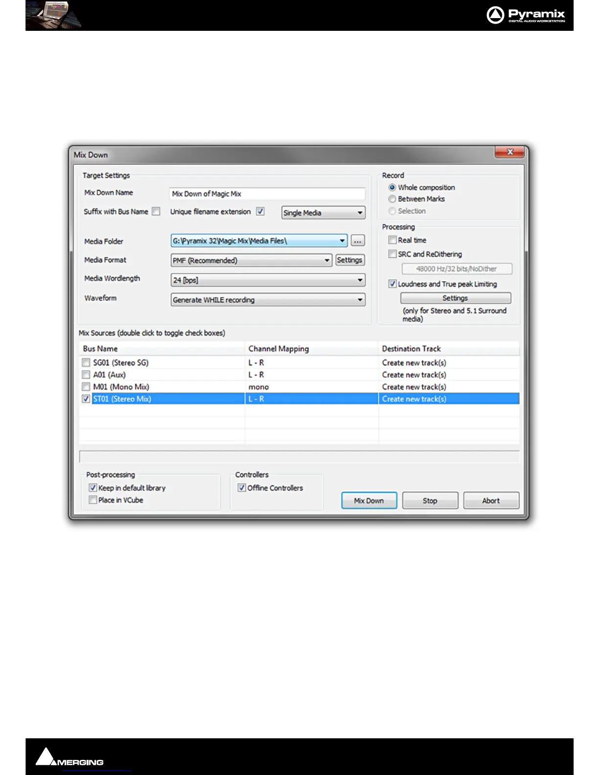 1. Choose Project > Mix Down to open the Mix Down dialog box.