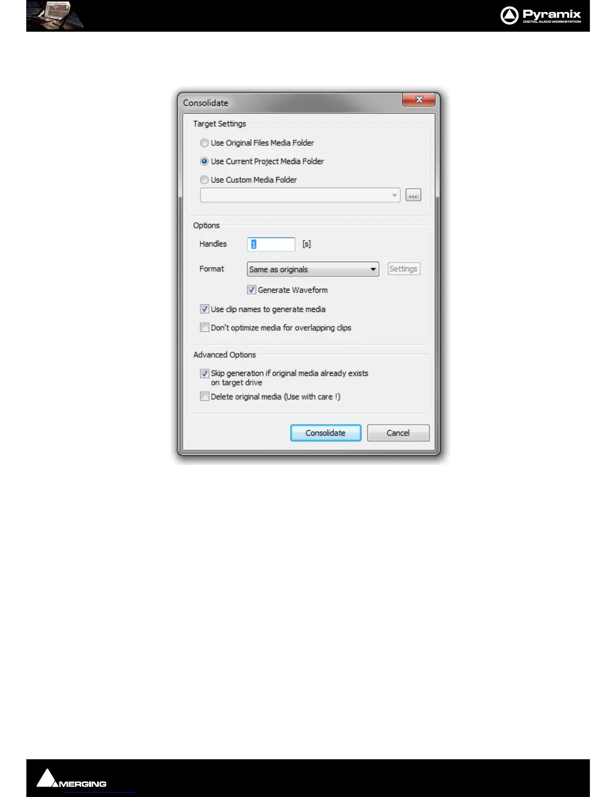 file referenced by the Clips in a composition, Consolidate backs up only those parts of the media files that are ref-