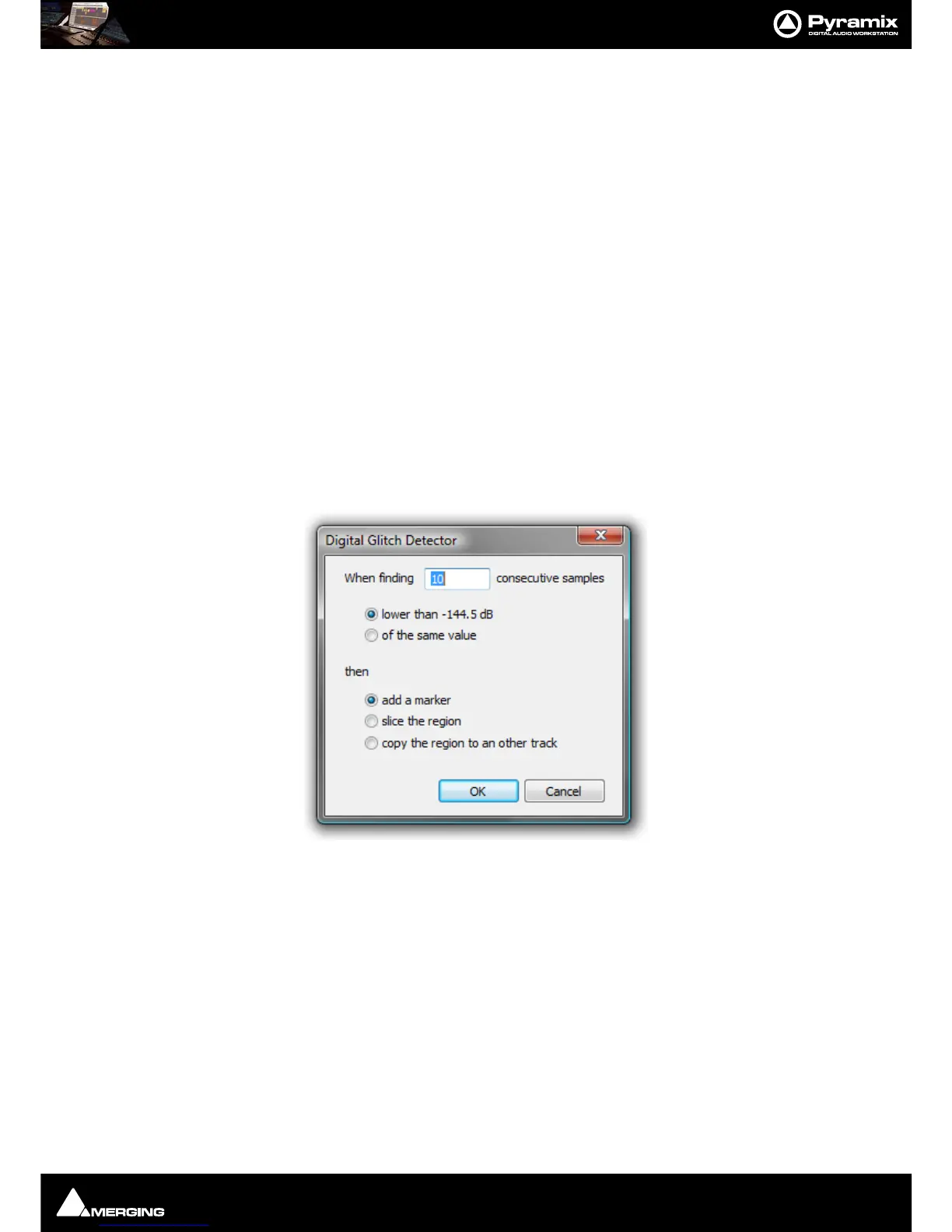 Now select what you wish Pyramix to do when it detects the type of potential glitch chosen above: