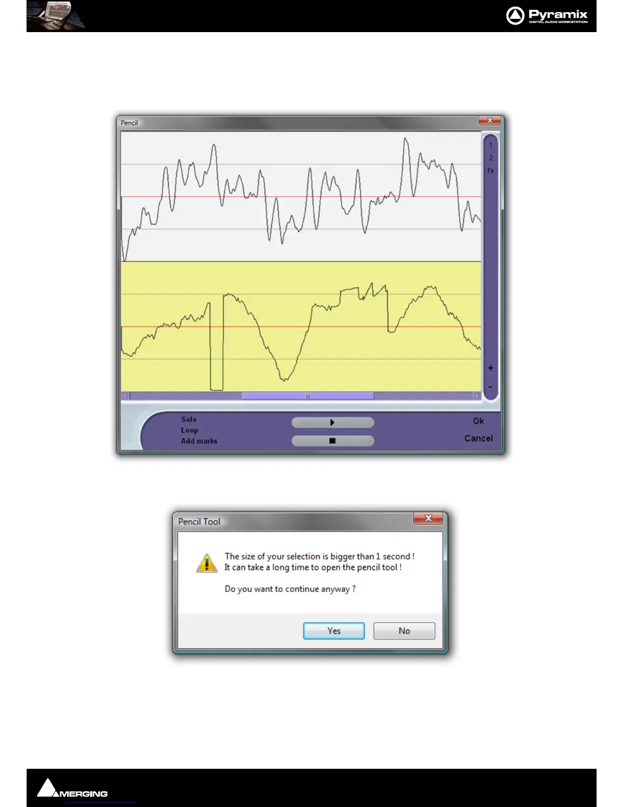 Note: If you select a section of audio longer than 1 second this Pencil Tool dialog will appear: