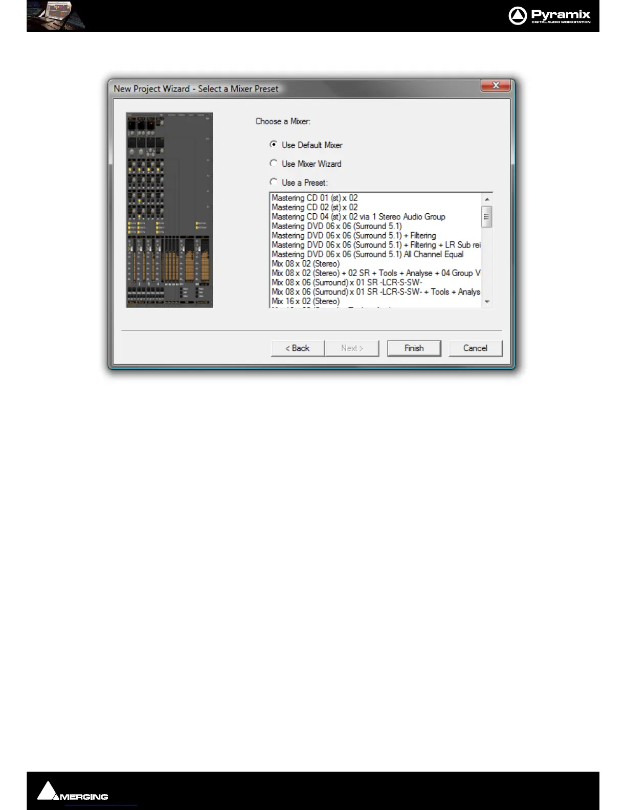 10. Click Next. The New Project Wizard - Select a Mixer Preset dialog will open.
