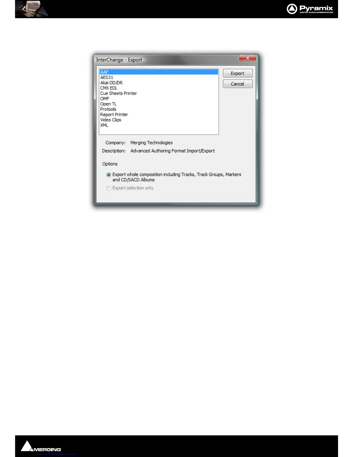 Export whole composition including Tracks, Track groups, Discs and Markers
