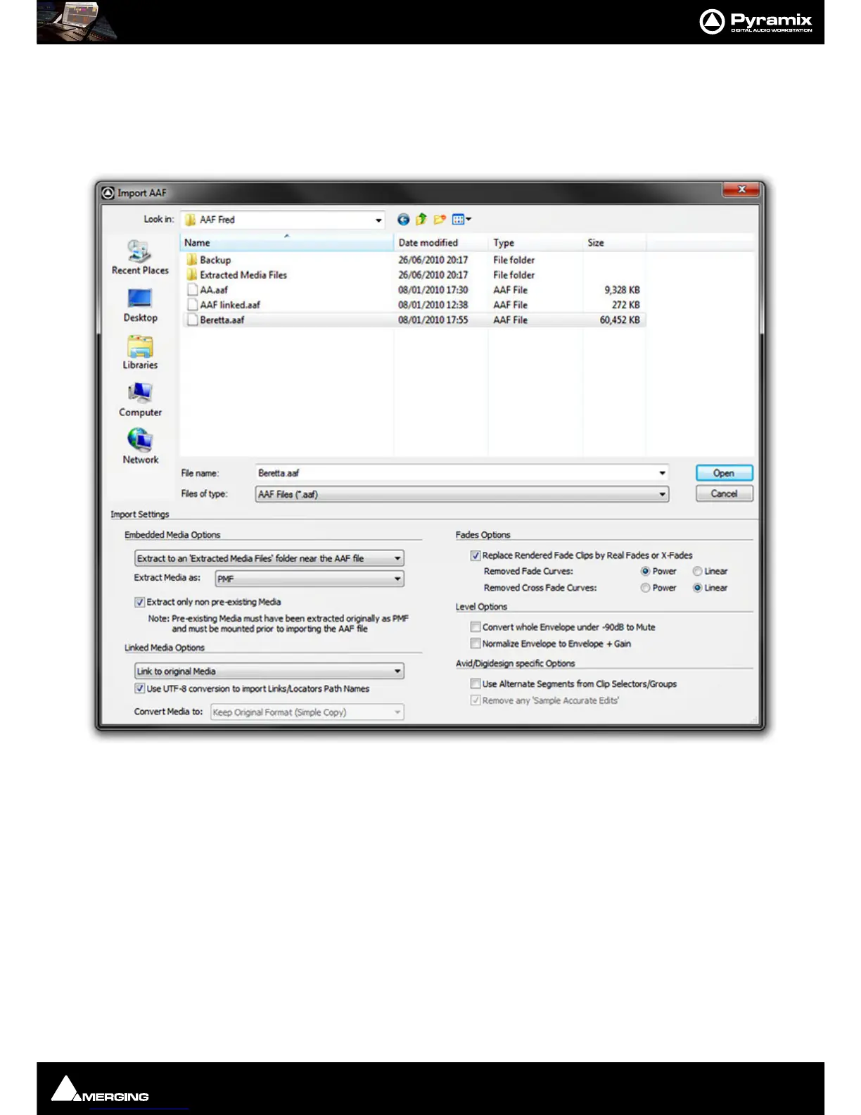 • Extract to an ‘Extracted Media Files’ folder near the AAF file