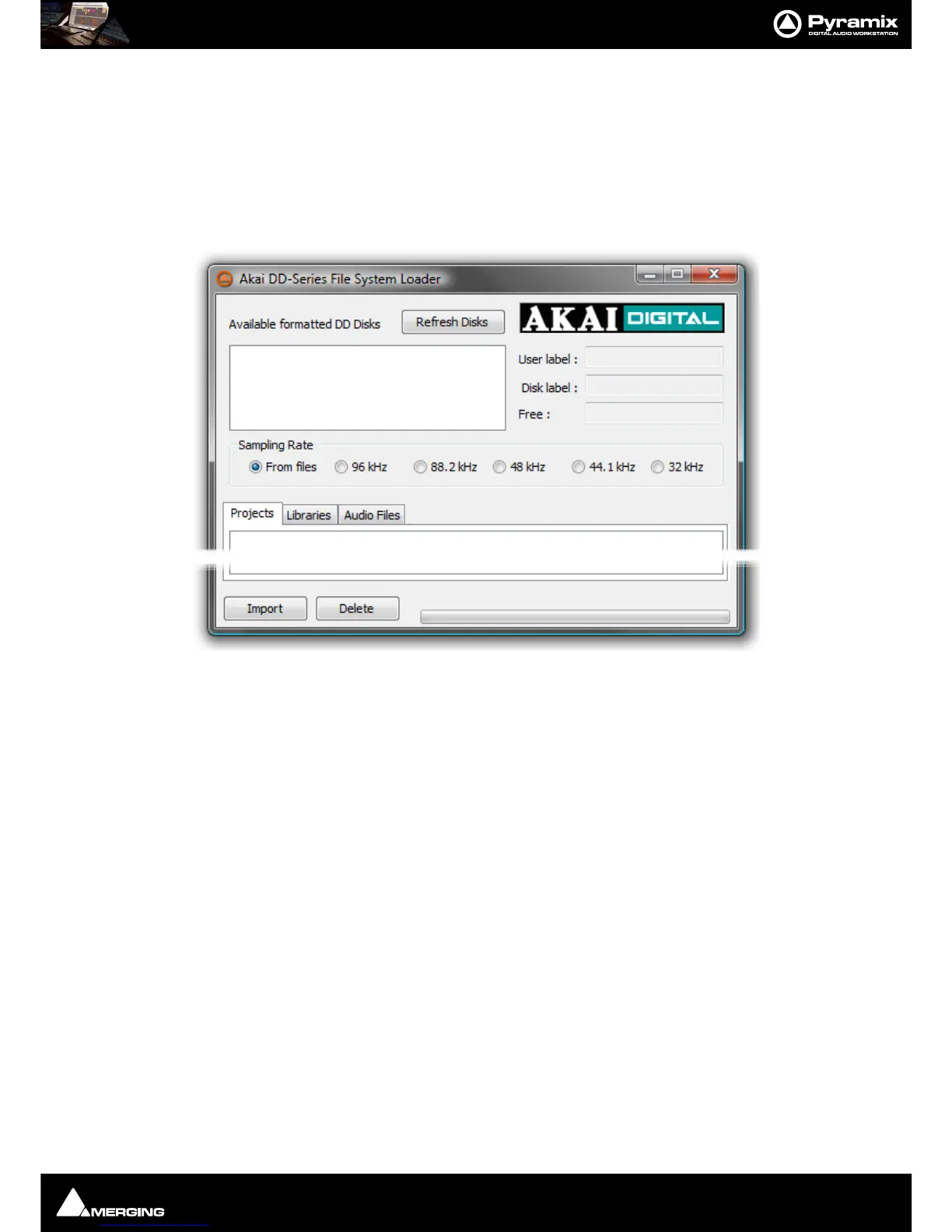 Since Pyramix is capable of reading the audio data directly from an Akai disk, it is not necessary to import the