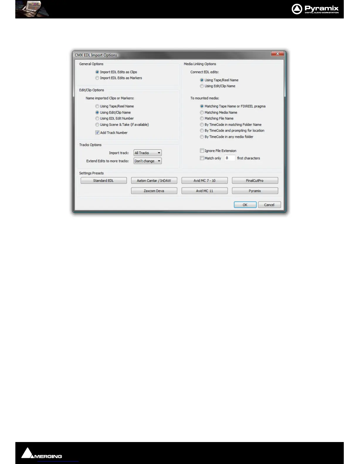 the edl you wish to import matches one of these, simply click the appropriate Preset button. The settings are