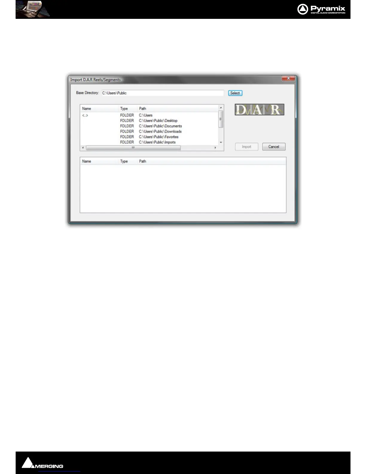 Interchange - Import dialog then click on the Import button. The Import D.A.R. Reels/Segments dialog opens:
