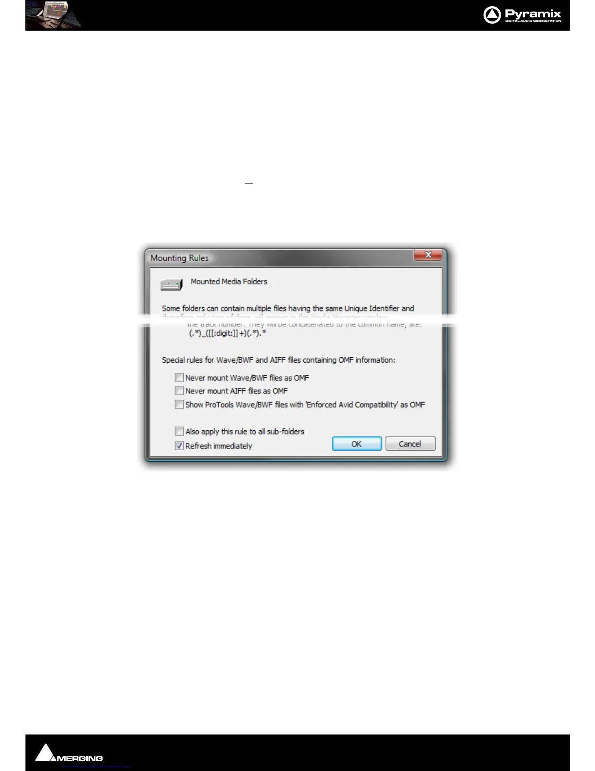 dialog has some special Mounting Rules options for folders containing Wave/BWF and AIFF files that have