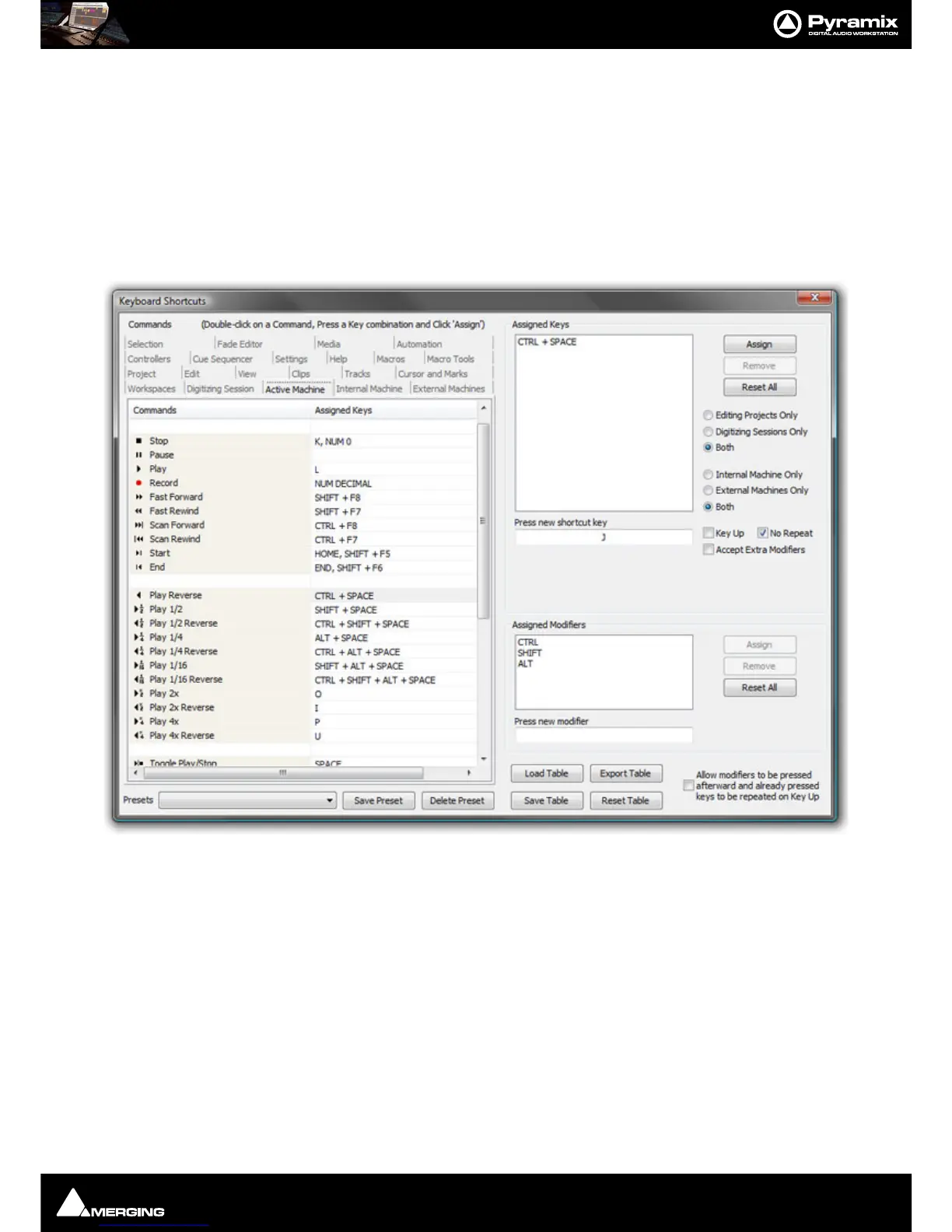 Customizing Pyramix : Customizing Keyboard Shortcuts