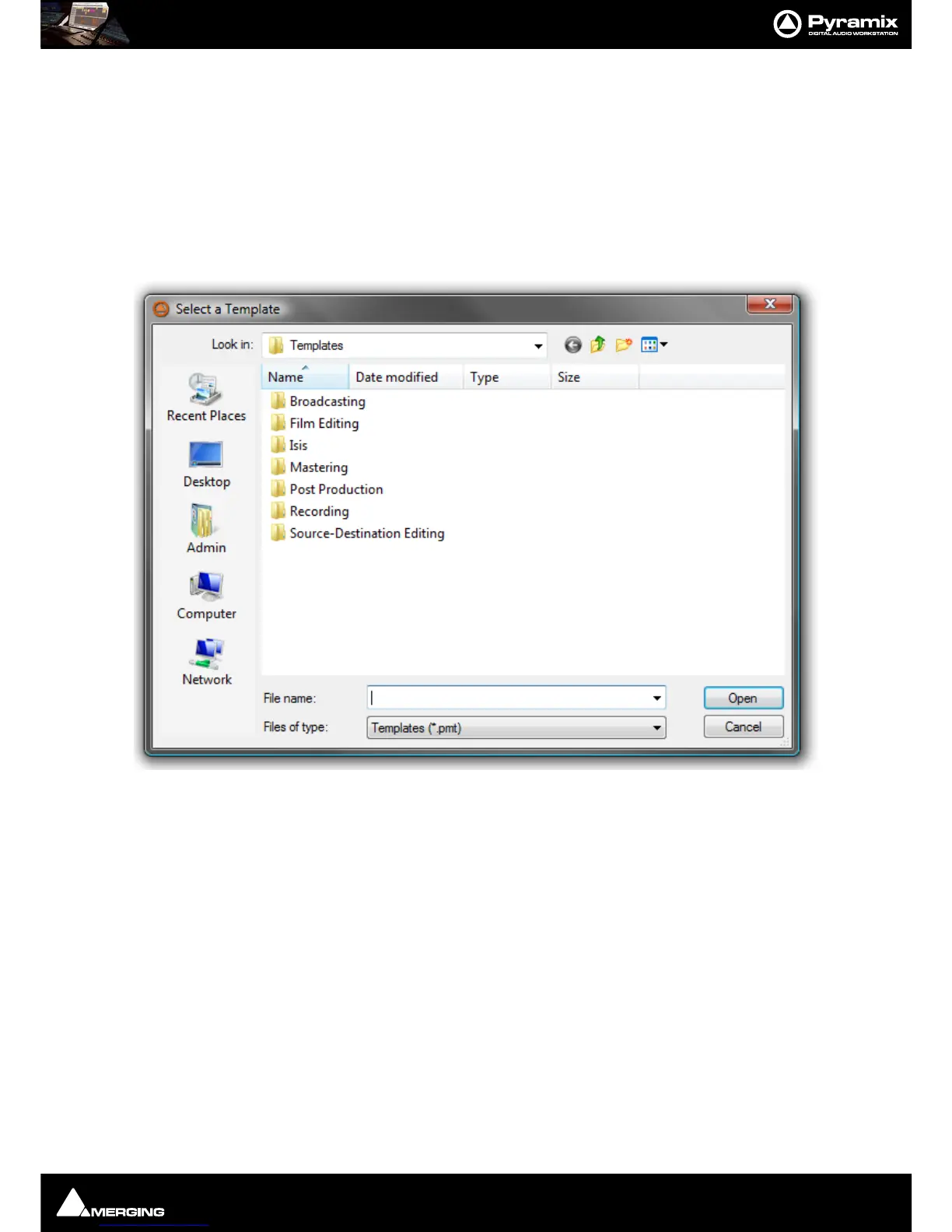 Pyramix provides the user with a number of Tem pl at es for various applications. A Template is a complete Pyramix