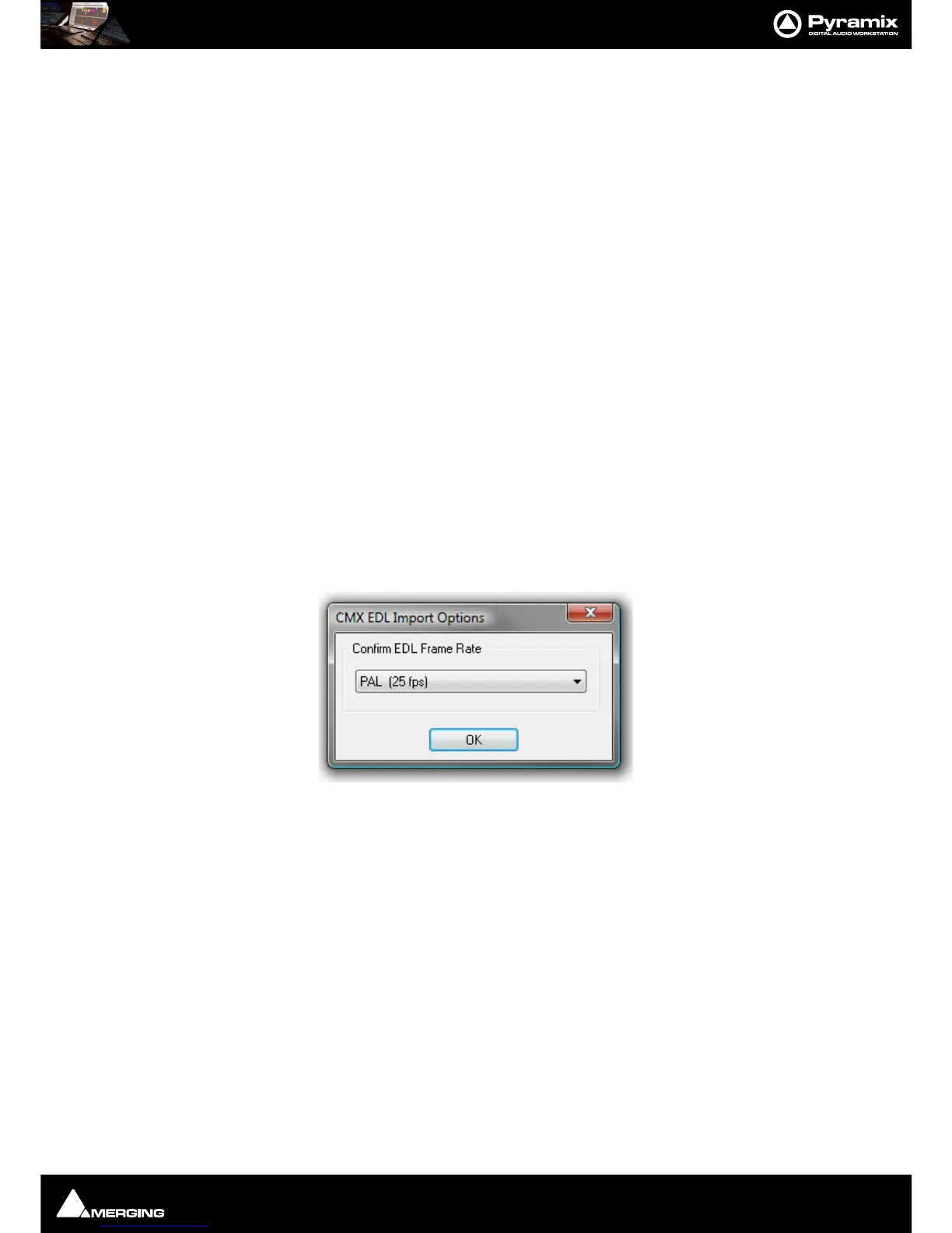 present in a folder available to the Pyramix PC in conformity with an imported EDL (Edit Decision List.) or video