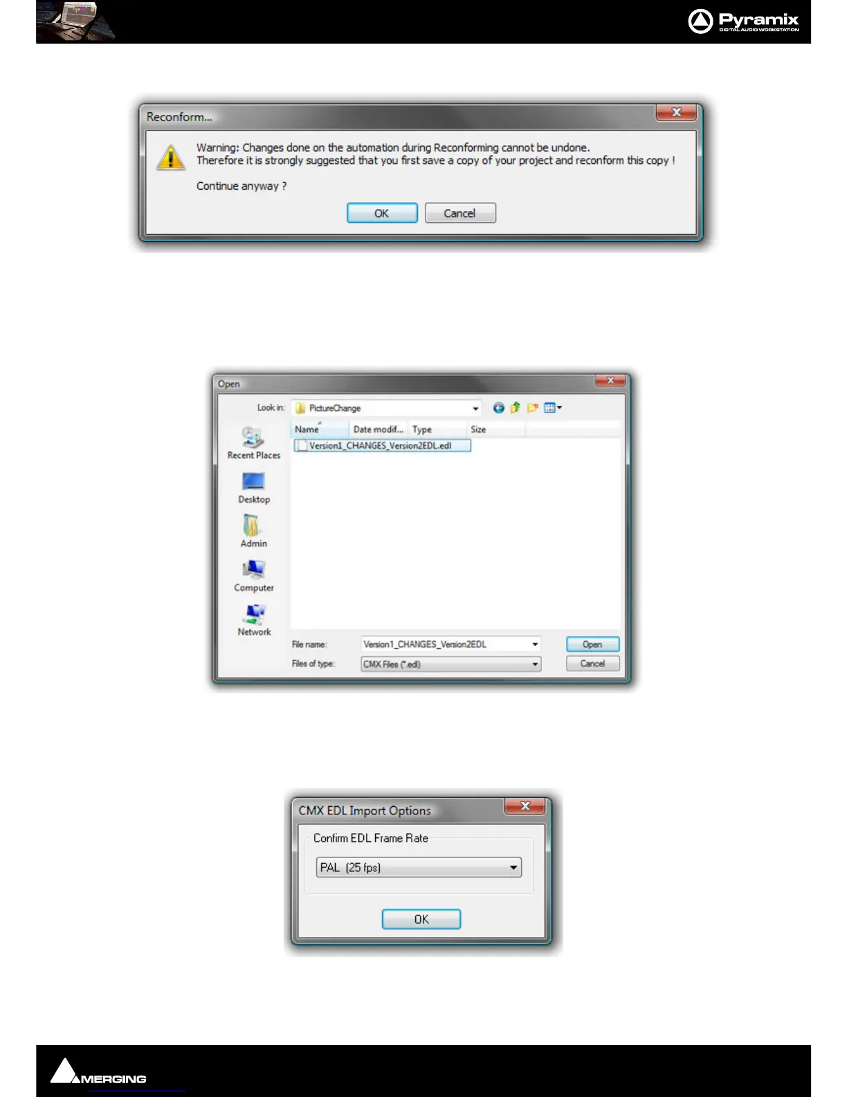 CMX EDL Import Options, Confirm EDL Frame Rate dialog opens: