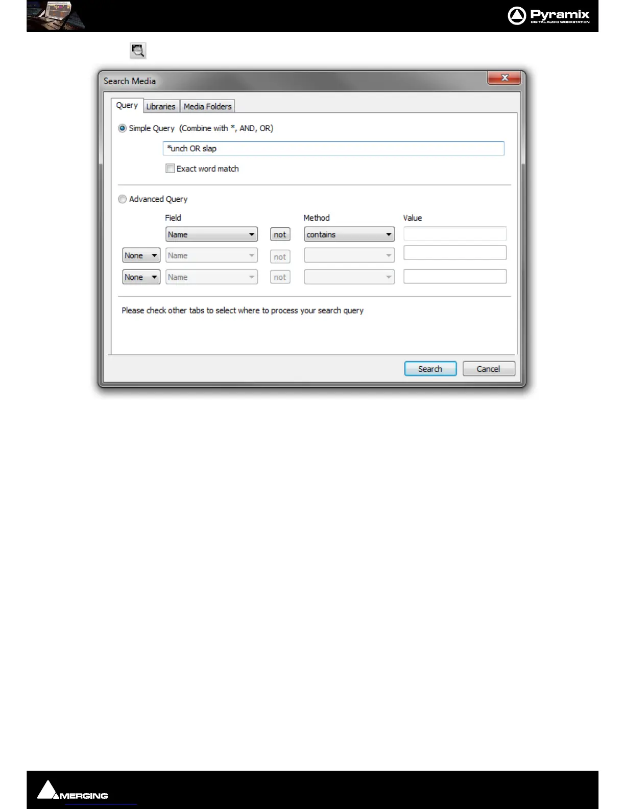 The Search Media dialog opens with the Query Tab. This Tab sets up the search terms.