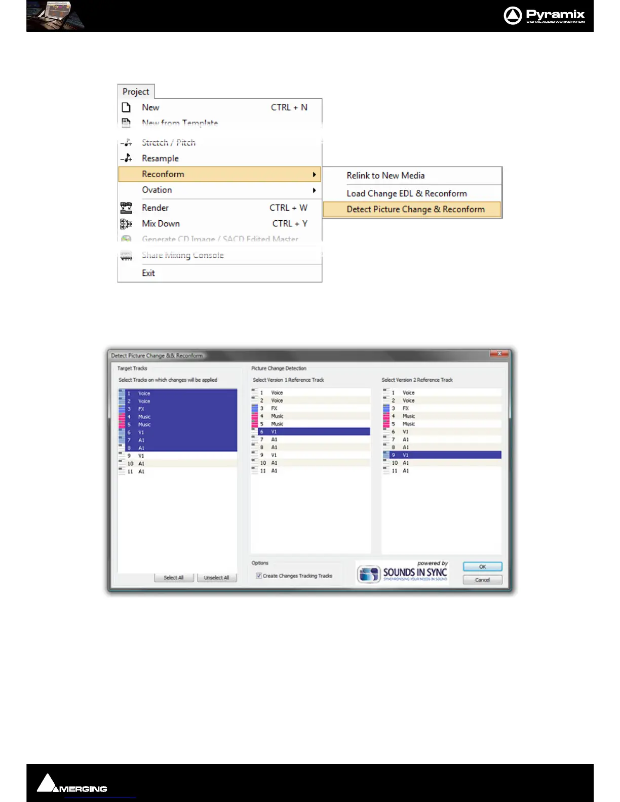 Select all Tracks that will have to be reconformed (generally all Tracks in the project except those belonging to the
