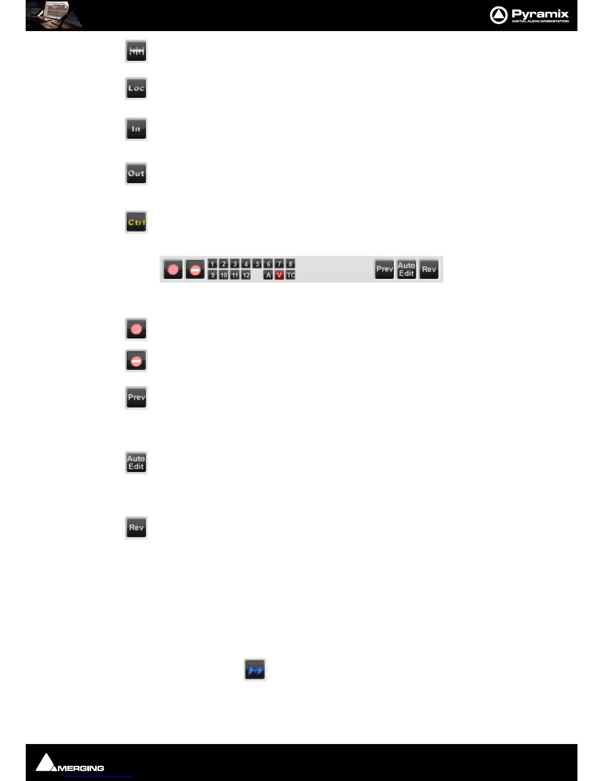 Auto Edit Initiates an edit. The External Machine (and any chasing machines) go into play
