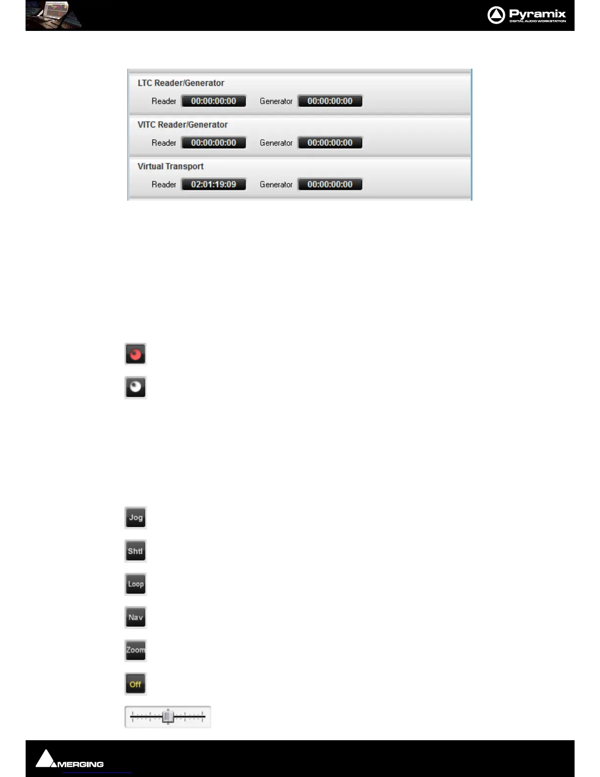 VT, Virtual Transport, the Reader Timecode is the VT TimeCode and the Generator is the TimeCode