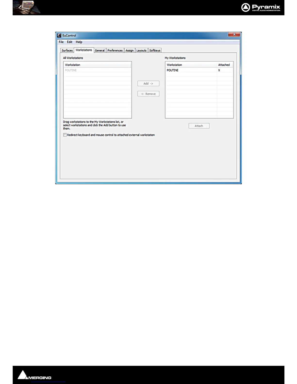 In the Workstation tab. Make sure the Pyramix PC is attached: