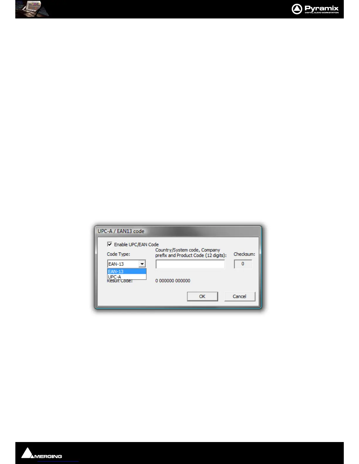 UPCEAN Code Clicking in this field opens the UPC-A / EAN13 code dialog box.