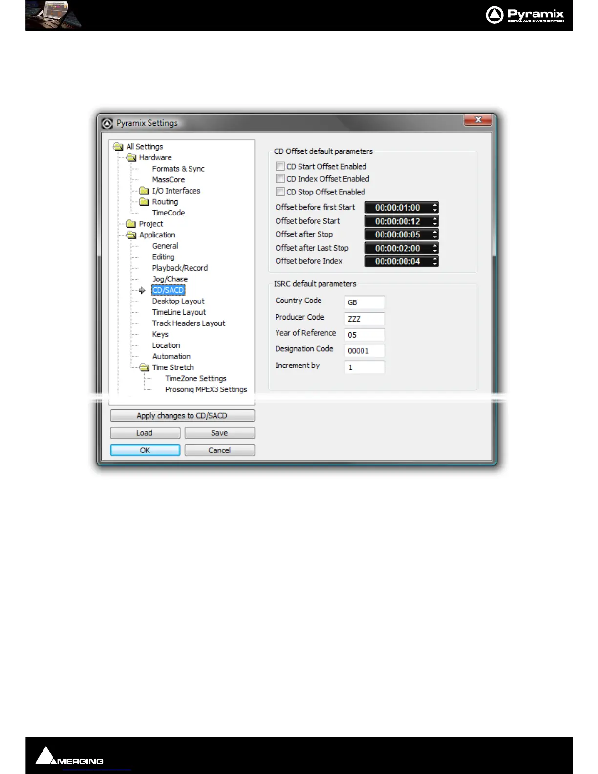 CD Offset default parameters and ISRC default parameters are set in the Settings > All Settings > Application >