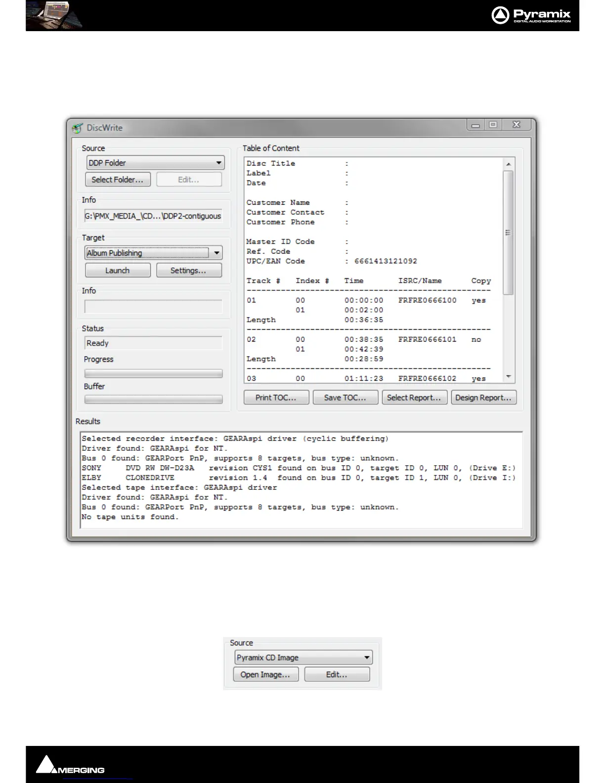 DiscWrite is a separate application bundled with Pyramix Virtual Studio that is used to write the CD image out to
