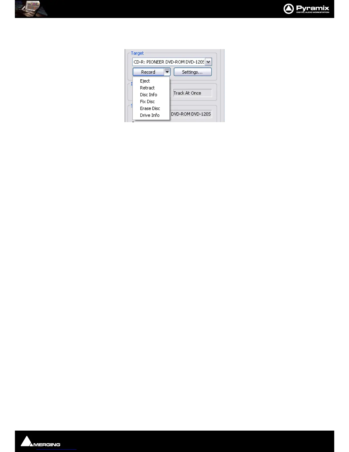 When a CD-R(RW) is the selected target, the arrow beside the Record button drops-down a list of options:.