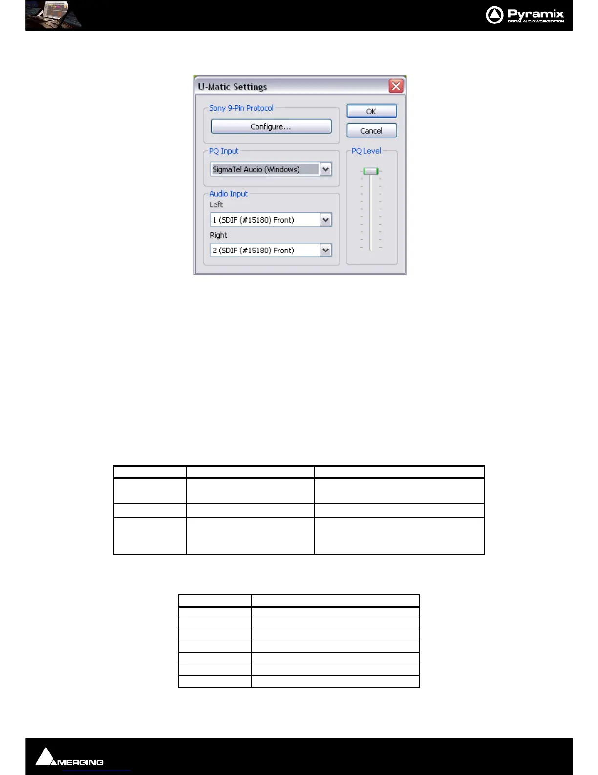 To set up remote control for the U-Matic machine via the Sony 9-pin P2 protocol click on Configure... (Please see: