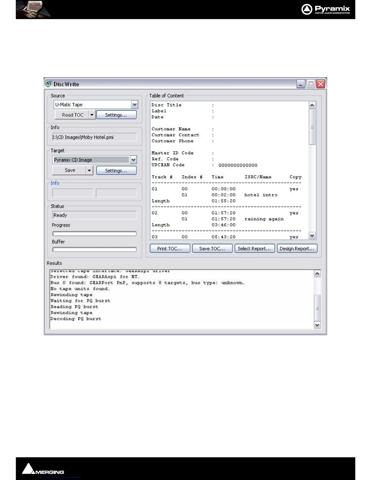 11. Click on Read TOC to start the U-Matic machine in replay to read in the Table Of Content from the tape.