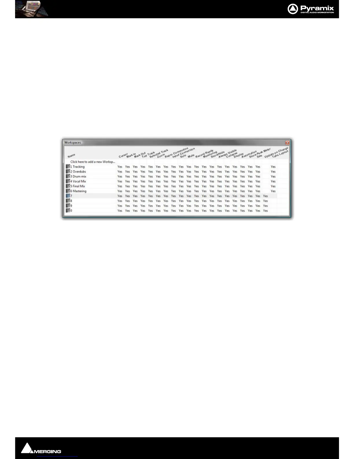 Workspaces can be accessed via the pull-down menu on the Pyramix Virtual Studio Window Toolbar or via the