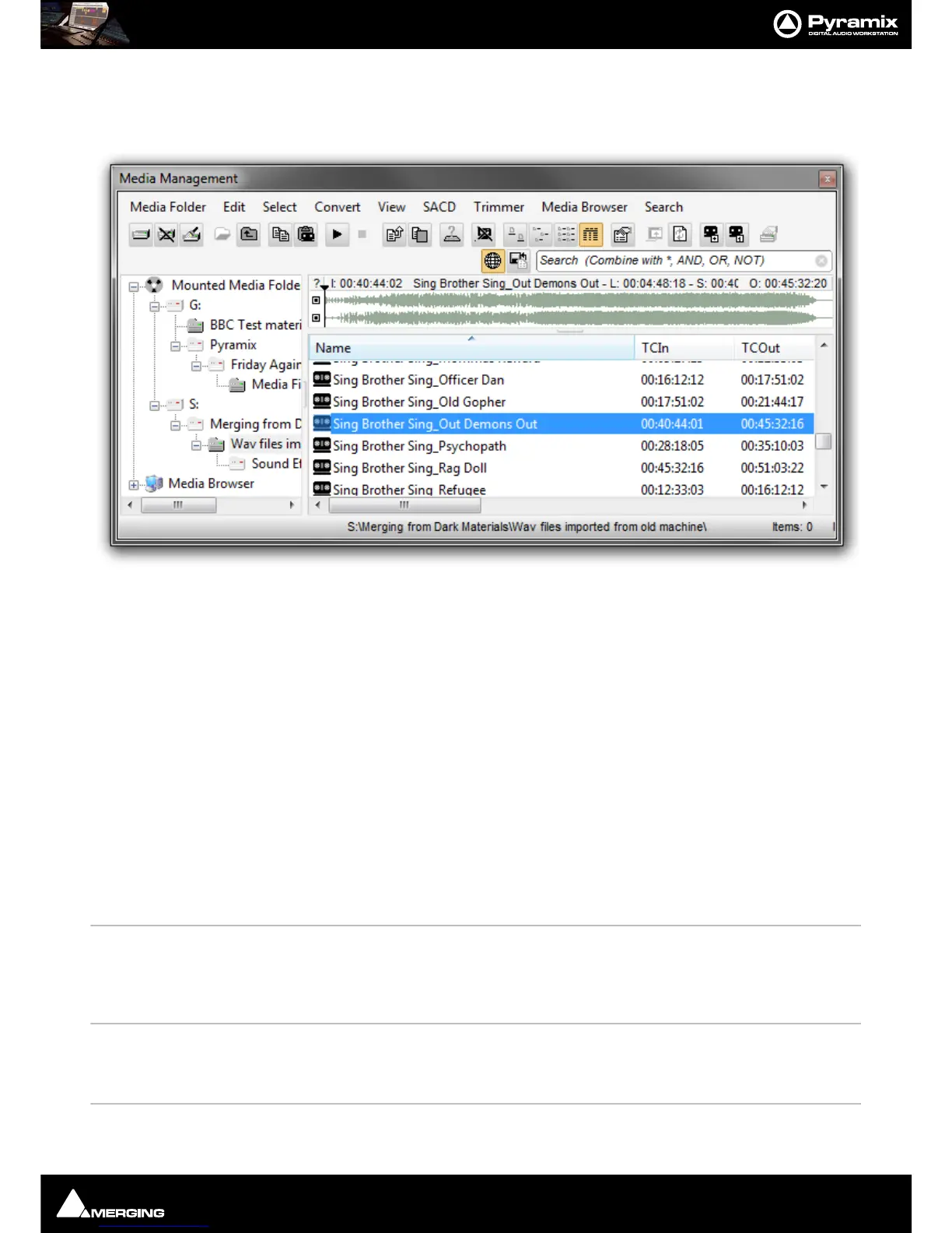 unmounting.) Makes the selected folder invisible to the Pyramix filing system