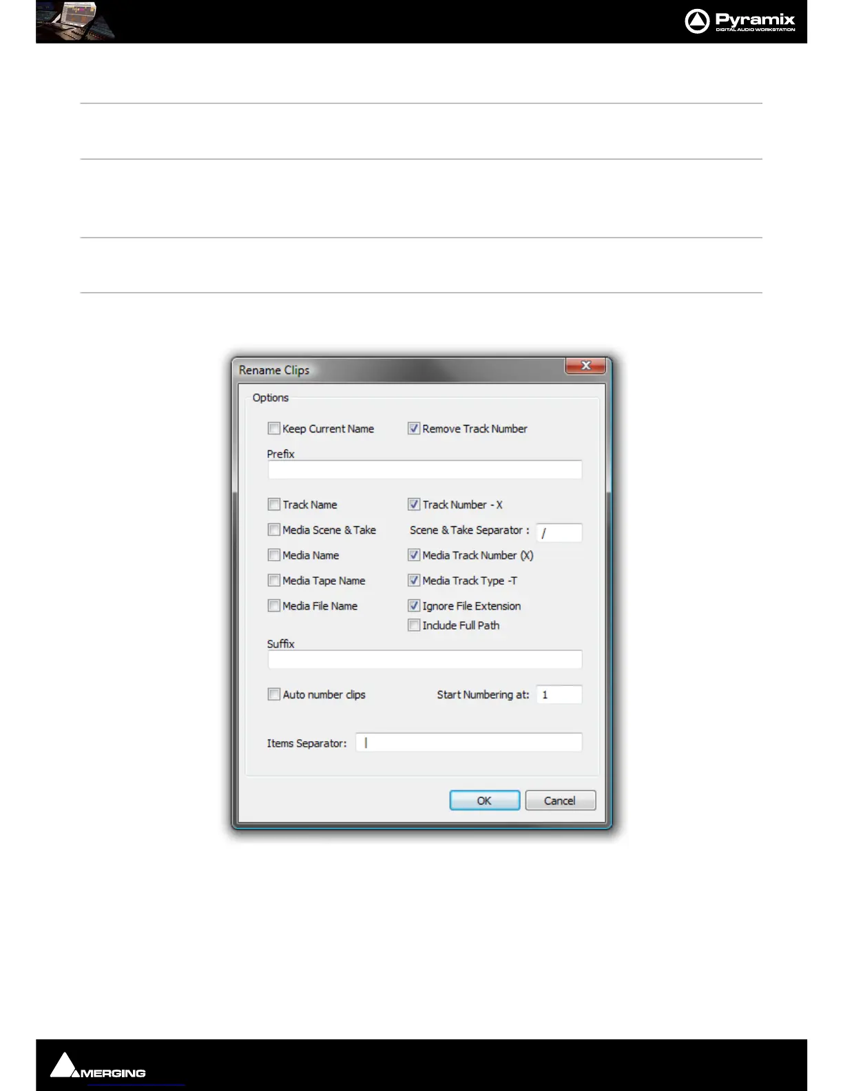 Rename Clips dialog
