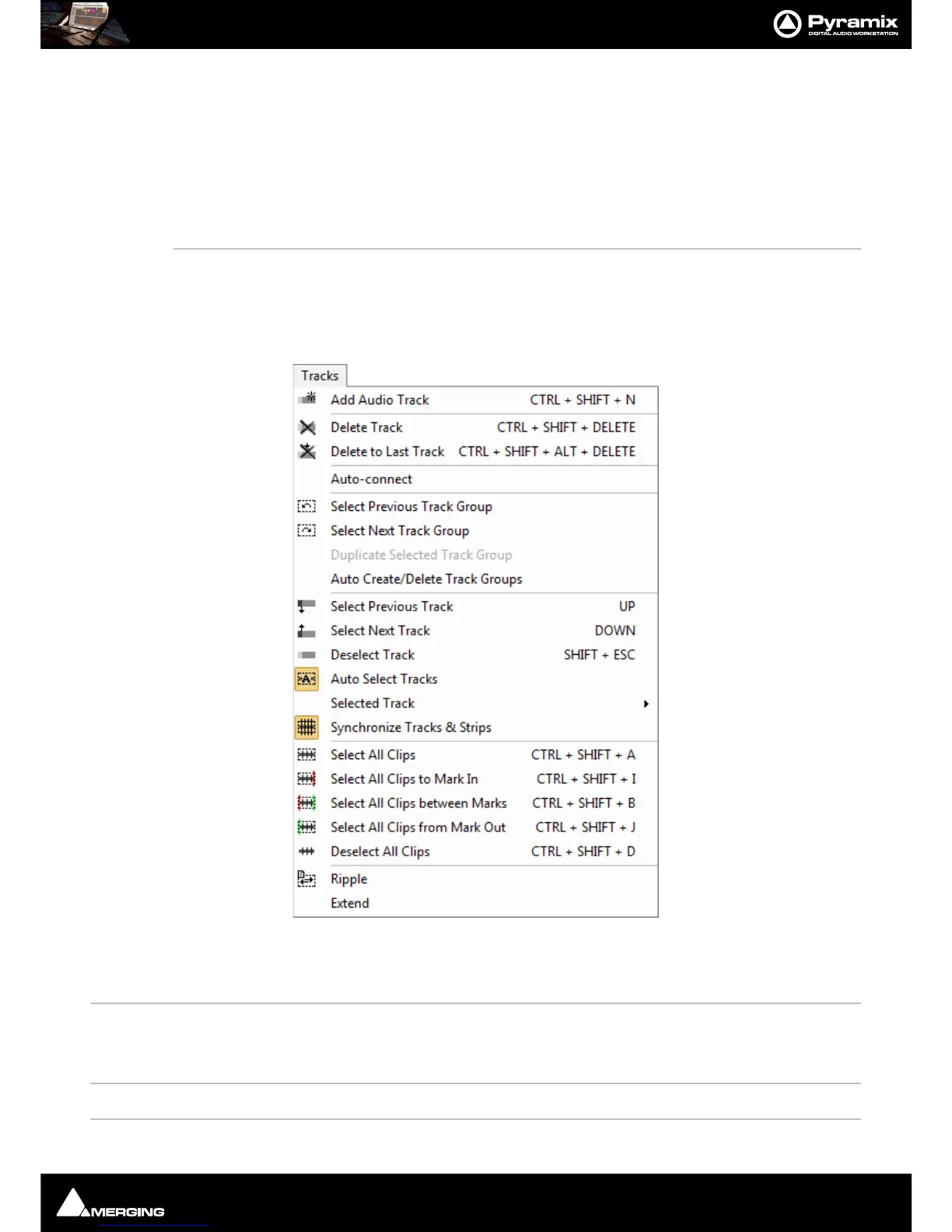 Add Audio Track Opens the Create Tracks dialog to enable new Audio Tracks / Mixer Strips to be created in