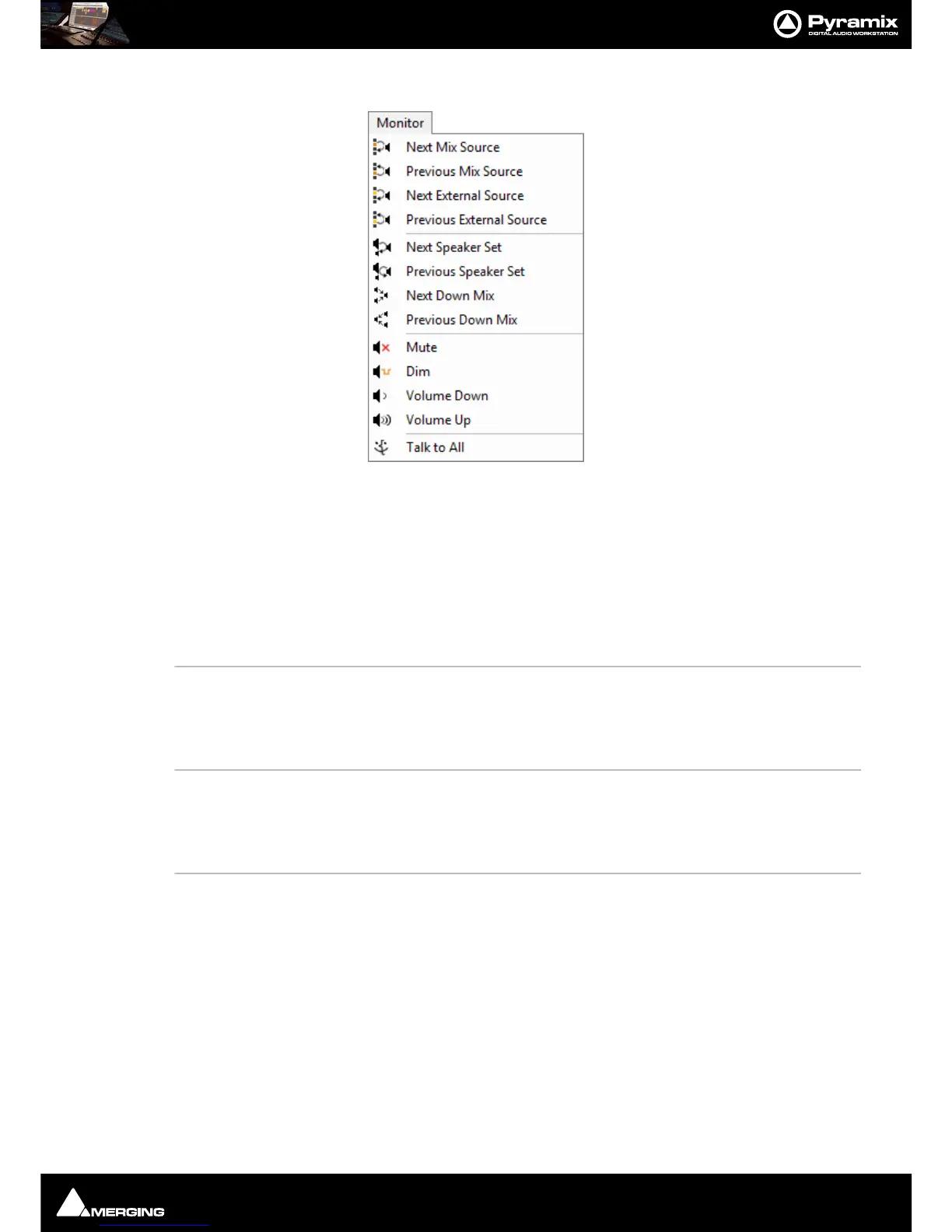 The Monitor menu is intended mainly for use with hardware controllers such as the Merging Technologies