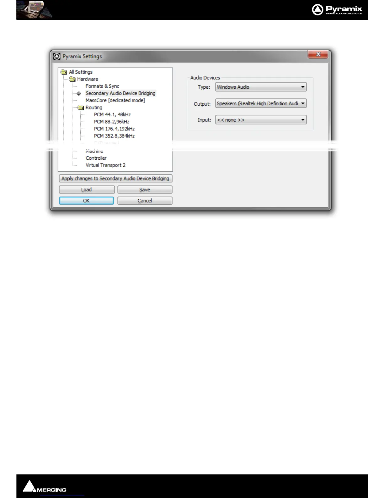 Note: This Settings page is only present when Secondary Audio Device Mode has been selected