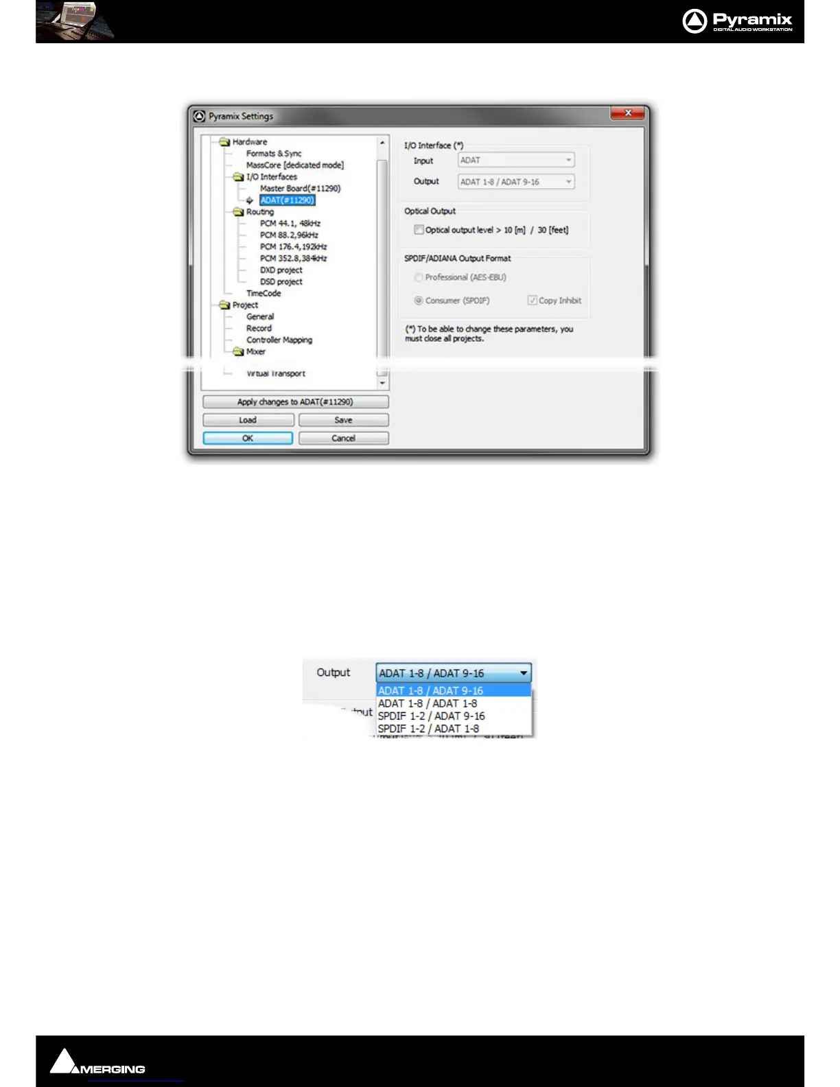 ADAT 1-8 / ADAT 9/16: Channels 1-8 on optical A and channels 9-16 on optical B.