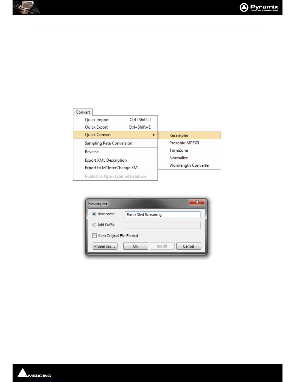Convert - Quick Convert sub-menu