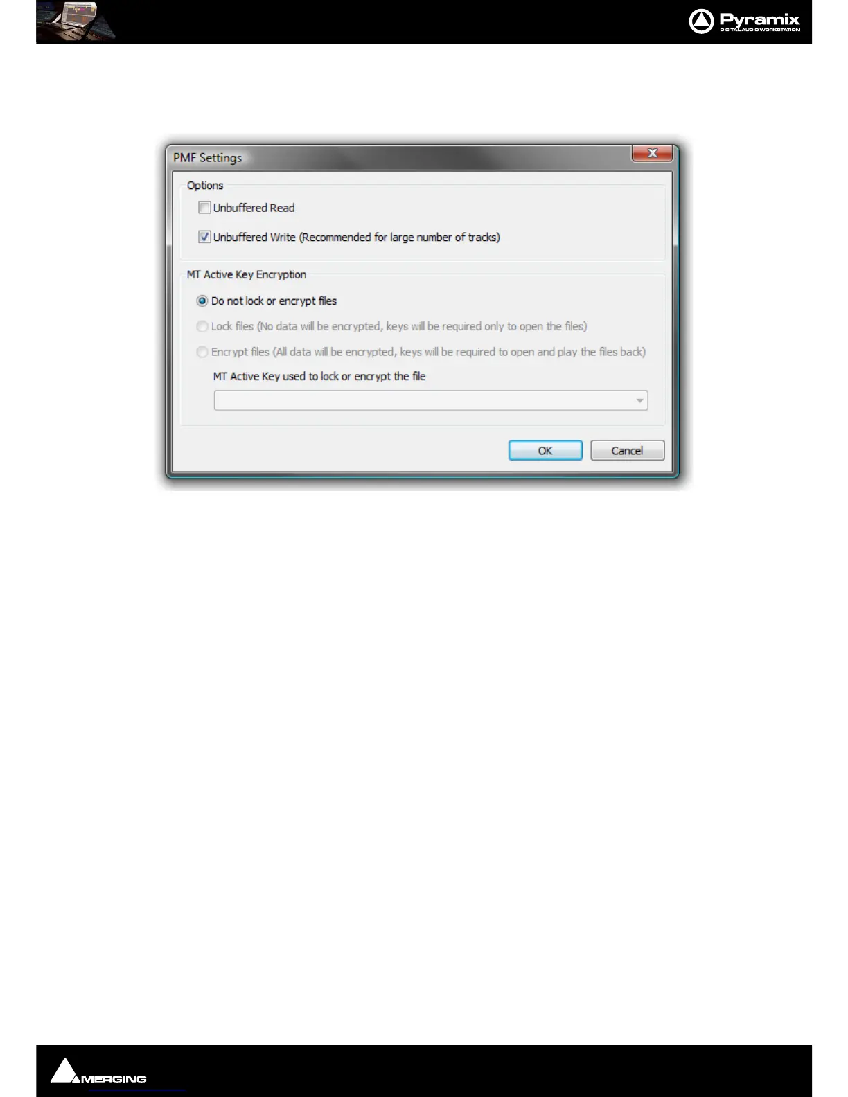 If PMF is chosen as the Format then the Settings button becomes active. When clicked the PMF Settings dialog