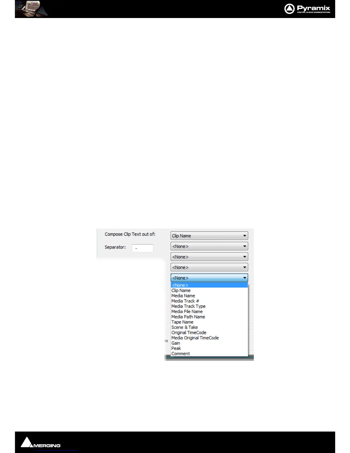 The Clip text displayed can consist of up to five elements chosen from the five