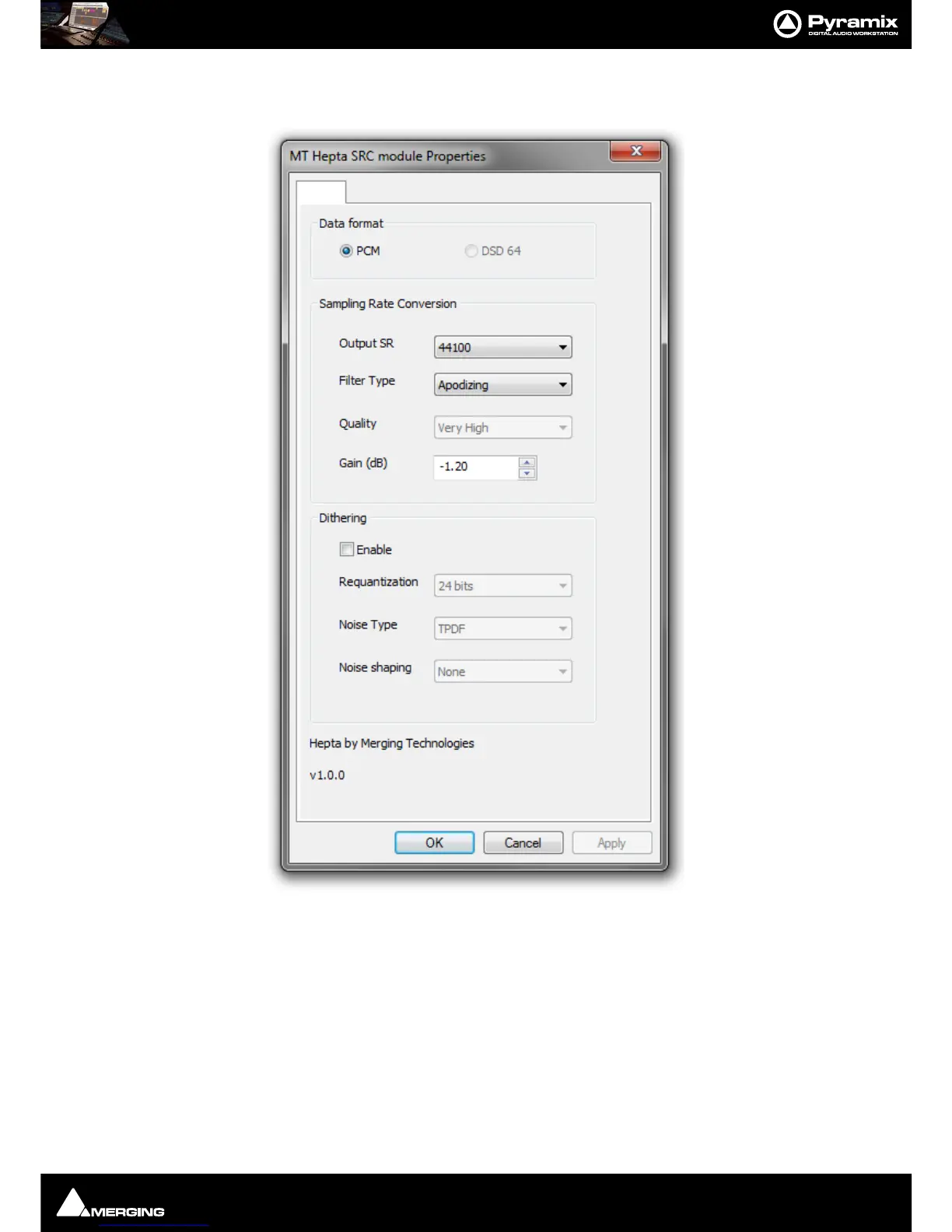The radio buttons offer the choice of PCM or DSD 64. (The latter is only available for DSD to DXD conversion.)