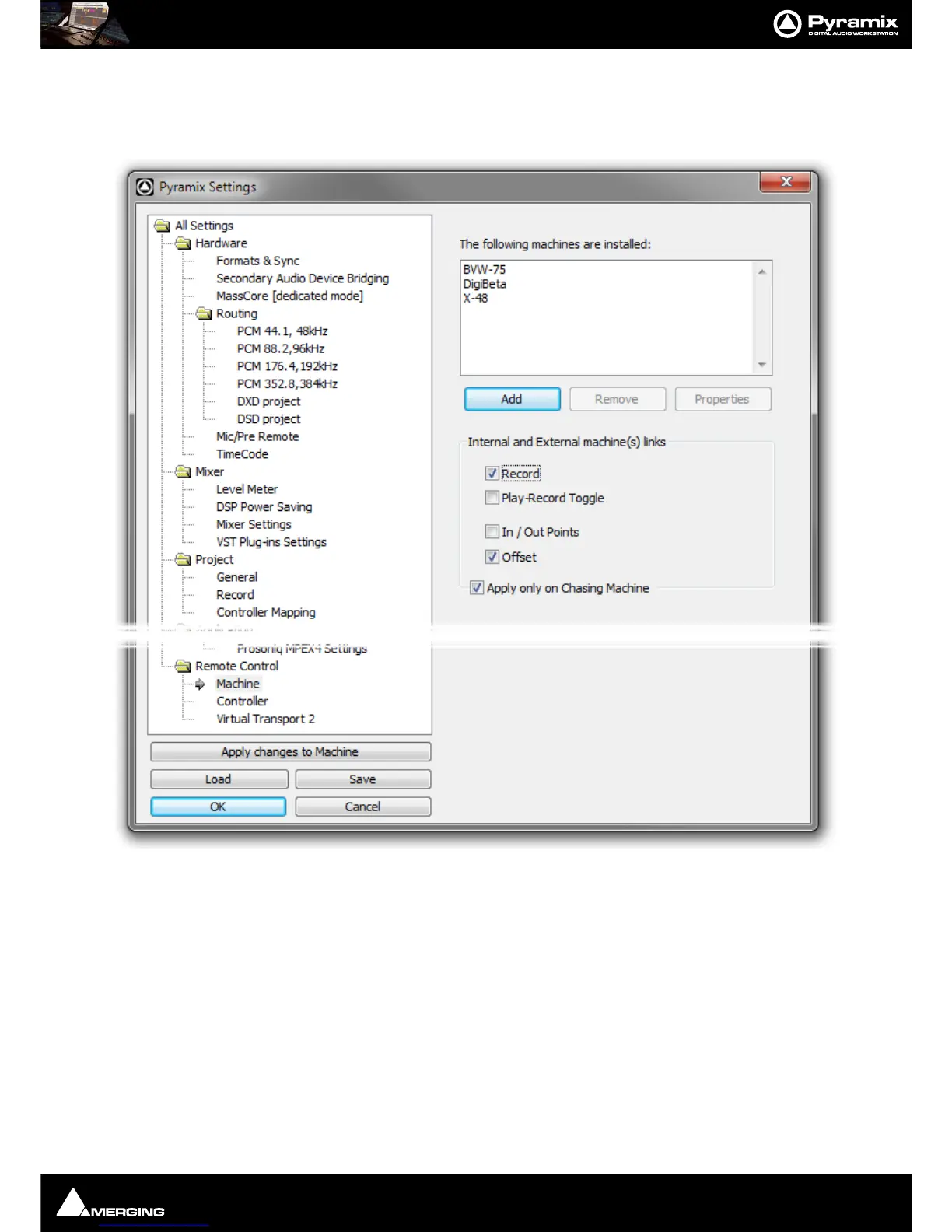 Displays a list of all installed machines. Machines in this list will be available as possible machine choices in the