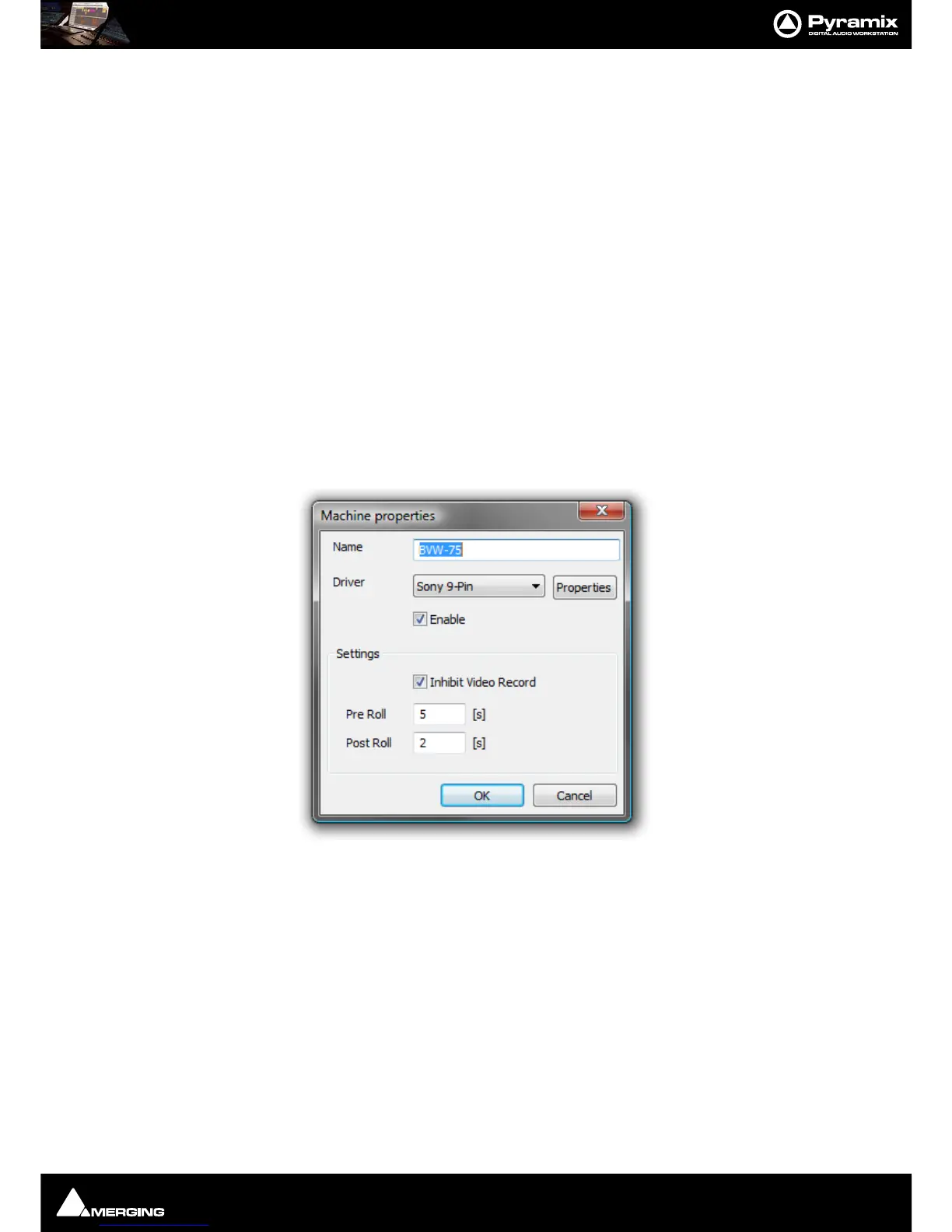 Clicking on the Properties button opens the Machine Properties dialog box (see below)