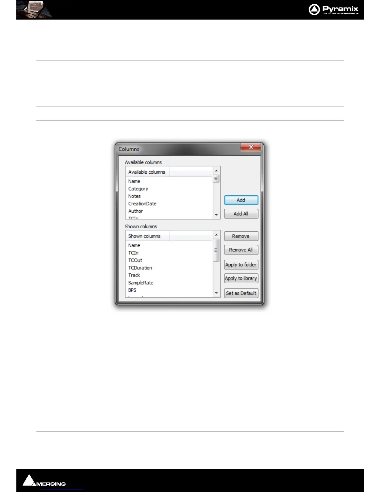 The dialog box shows two lists, Available Columns and Shown Columns.
