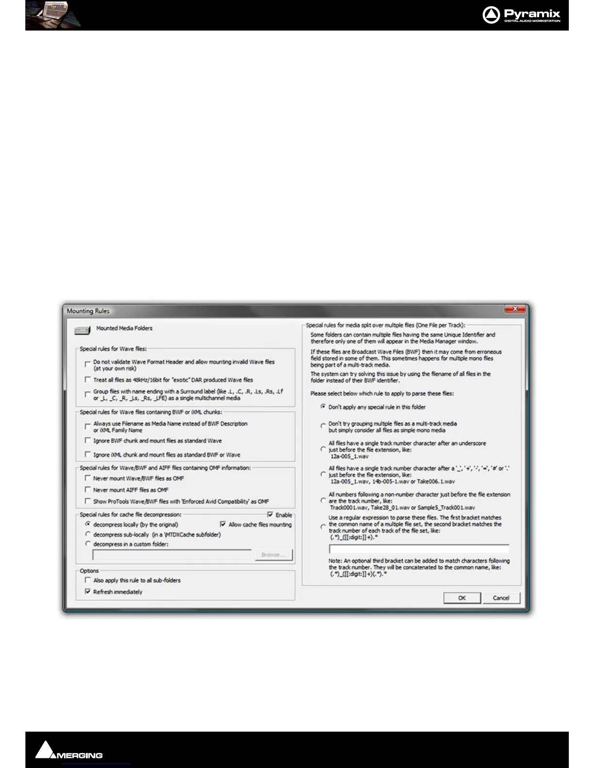 missing. The Pyramix Media Manager detects these conflicts at the time the folder is mounted and informs the