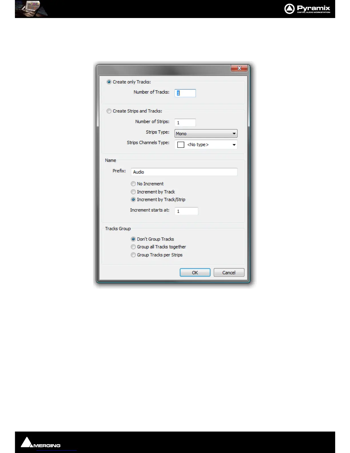 To simply create Mono Tracks only, check the Create only Tracks radio button, enter the number of Tracks
