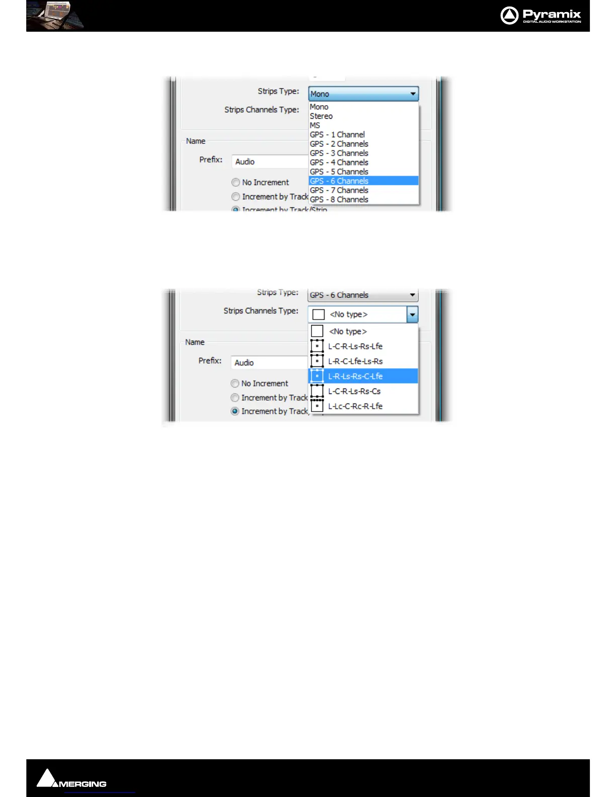 The formats on offer vary according to the Strip Type chosen. A six channel example is shown above. As a further