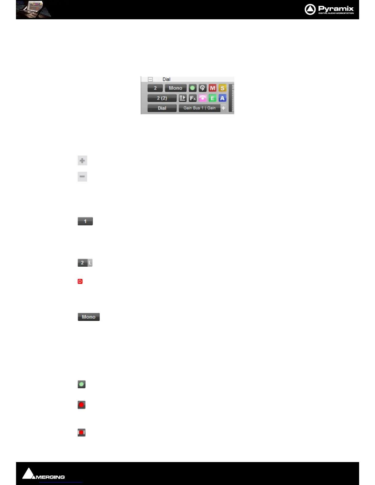 Where the mixer strip is anything other than mono a channel identifier is also shown. All