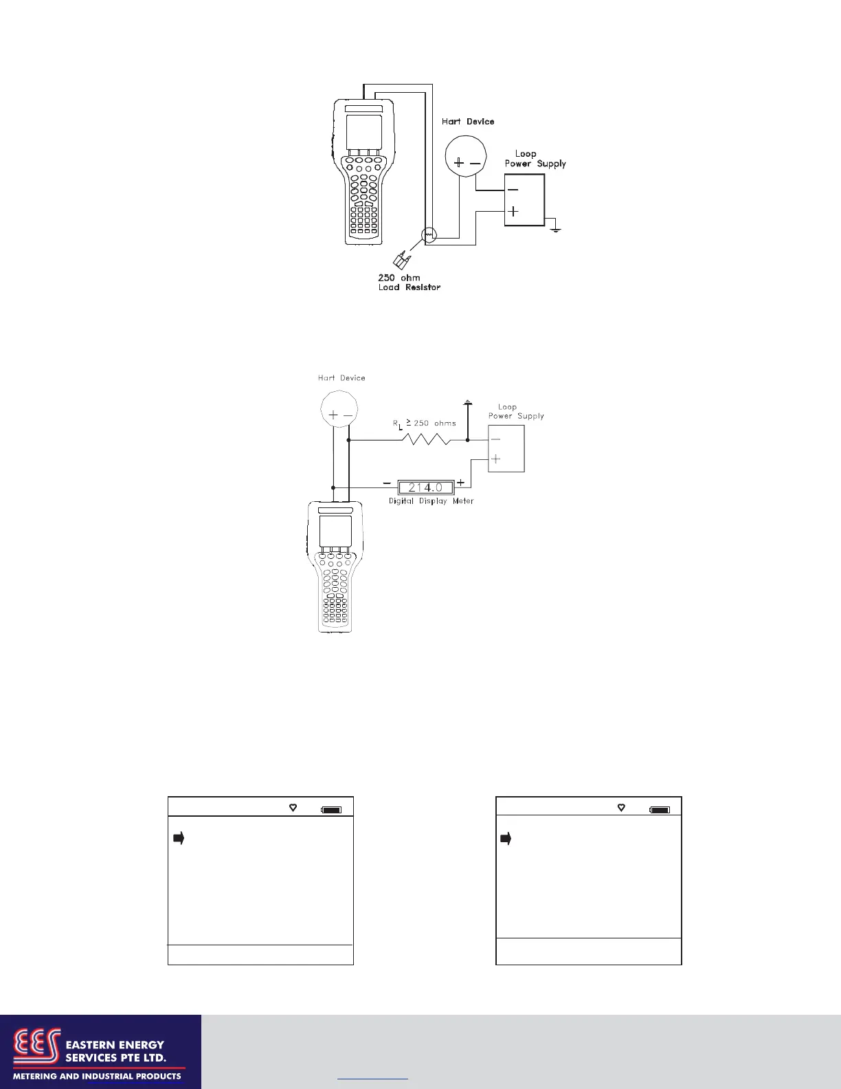 be connected across the loop + and – or to the HART device communication terminals. Refer to the