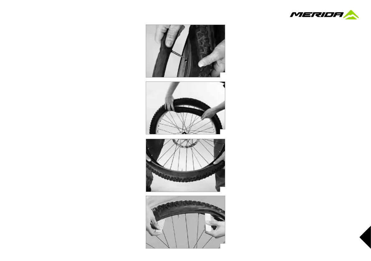 Work the tire into the rim by approaching the valve sym-