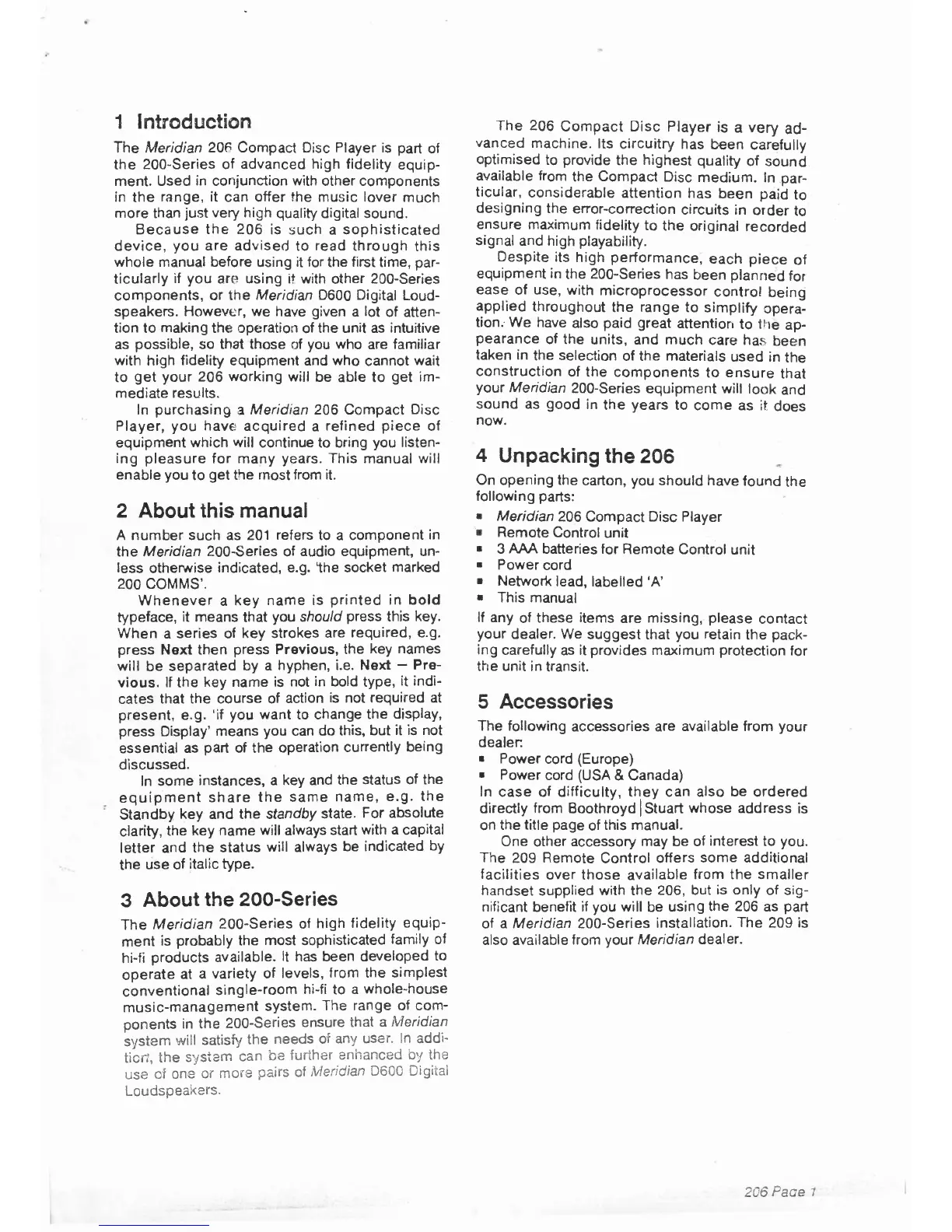 Meridian 206 - Introduction to Meridian 206; About this manual; About the 200-Series; Unpacking and Accessories