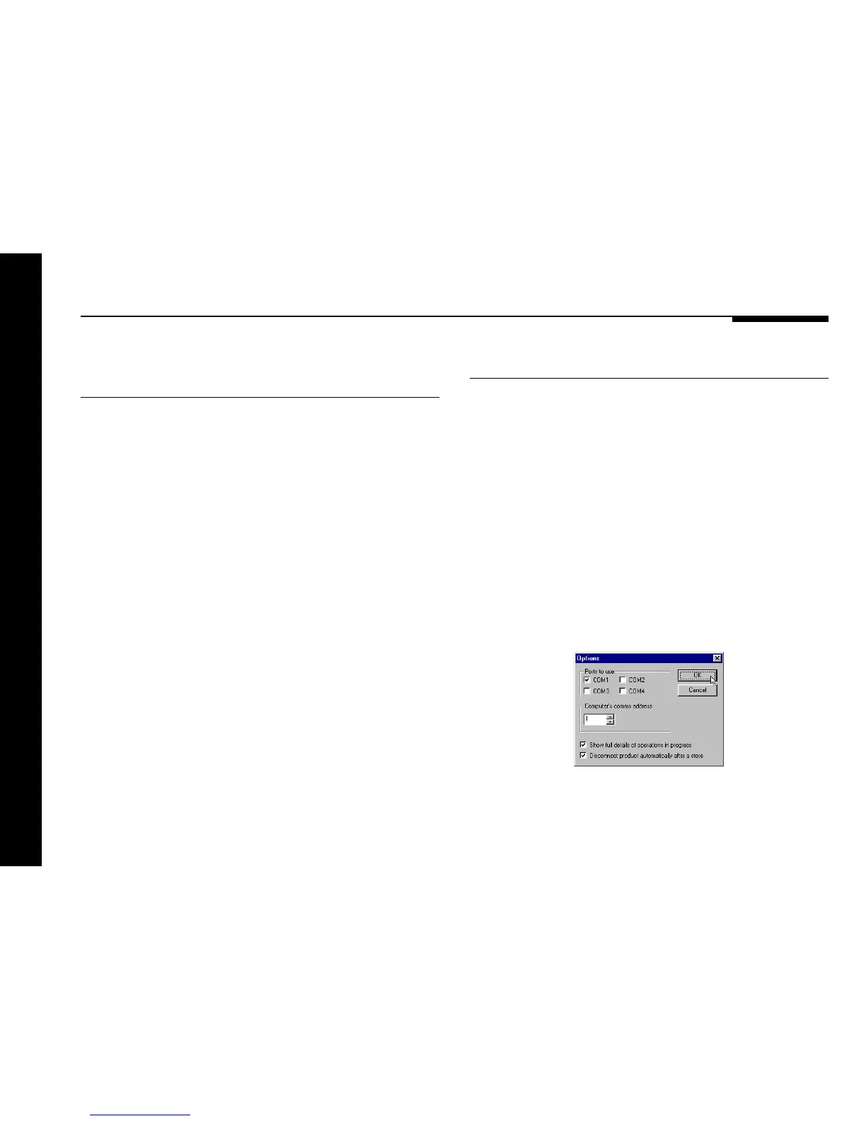 Options dialogue box:
