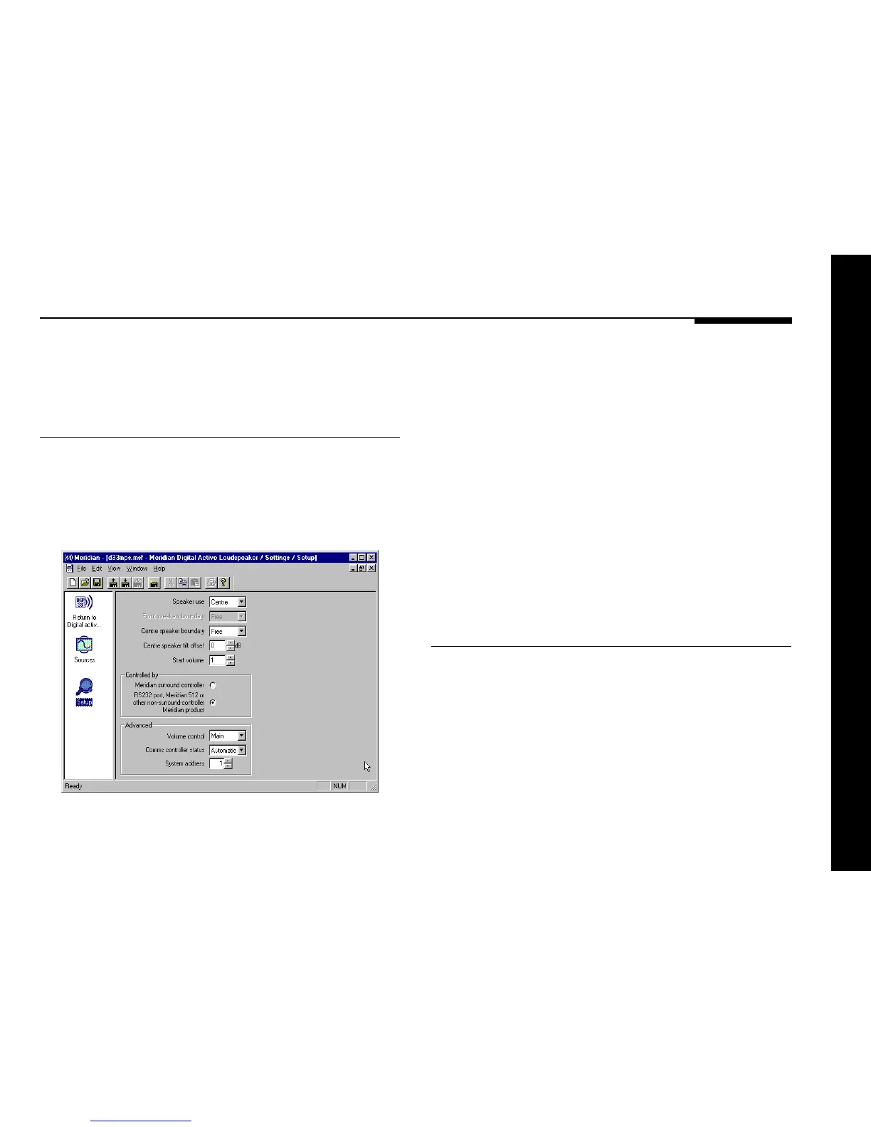 ● Click the Setup icon in the left-hand panel of the Meridian