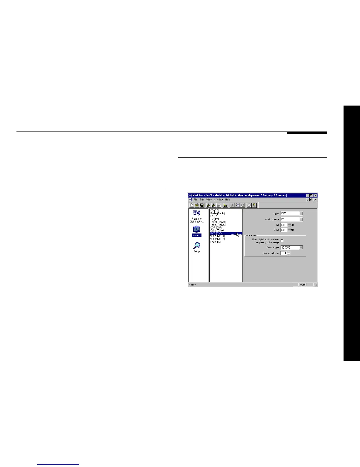 ● Click the Sources icon in the left-hand panel of the Meridian
